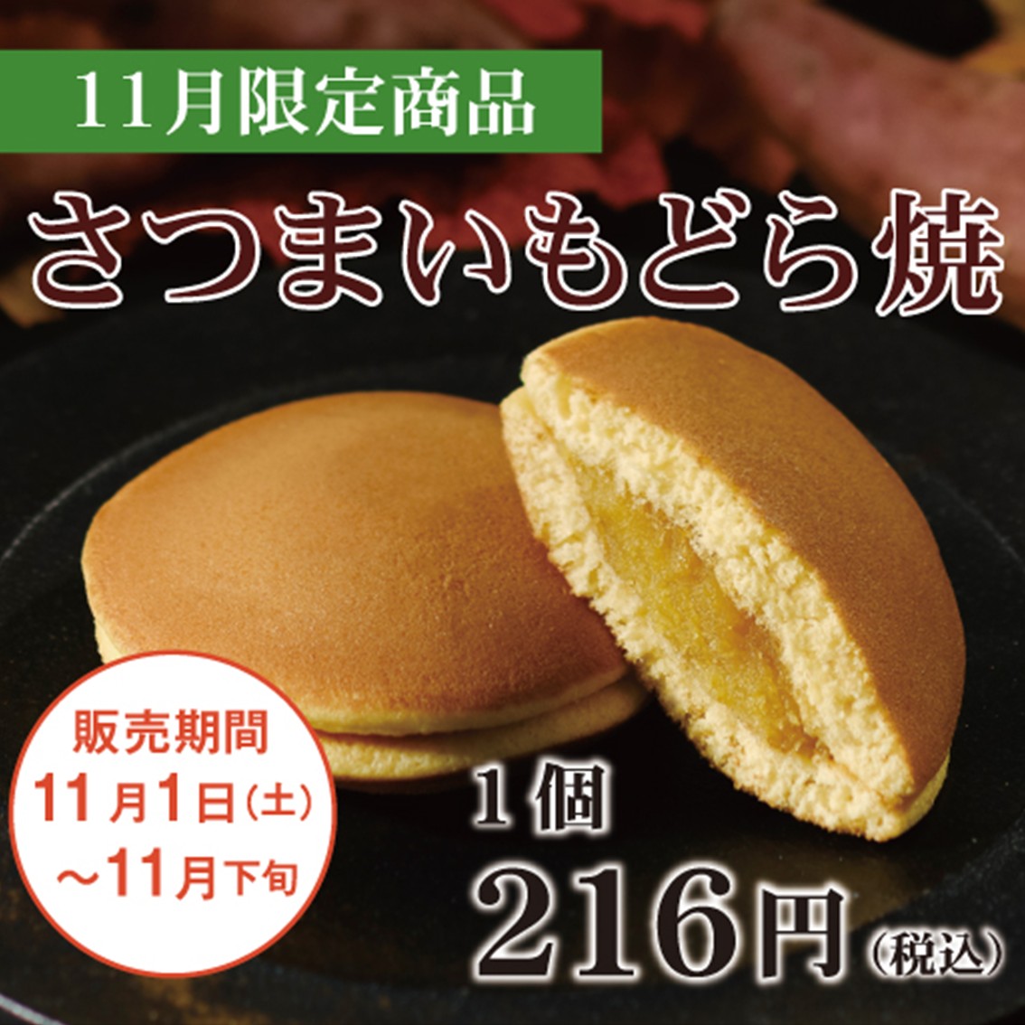 【如水庵】11月 限定商品「さつまいもどら焼き」販売中