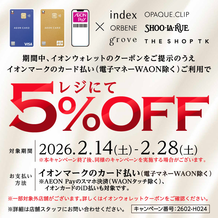 【ORBENE×AEON CARD】クーポンご提示のうえイオンマークのカード払いでレジにて5%OFF