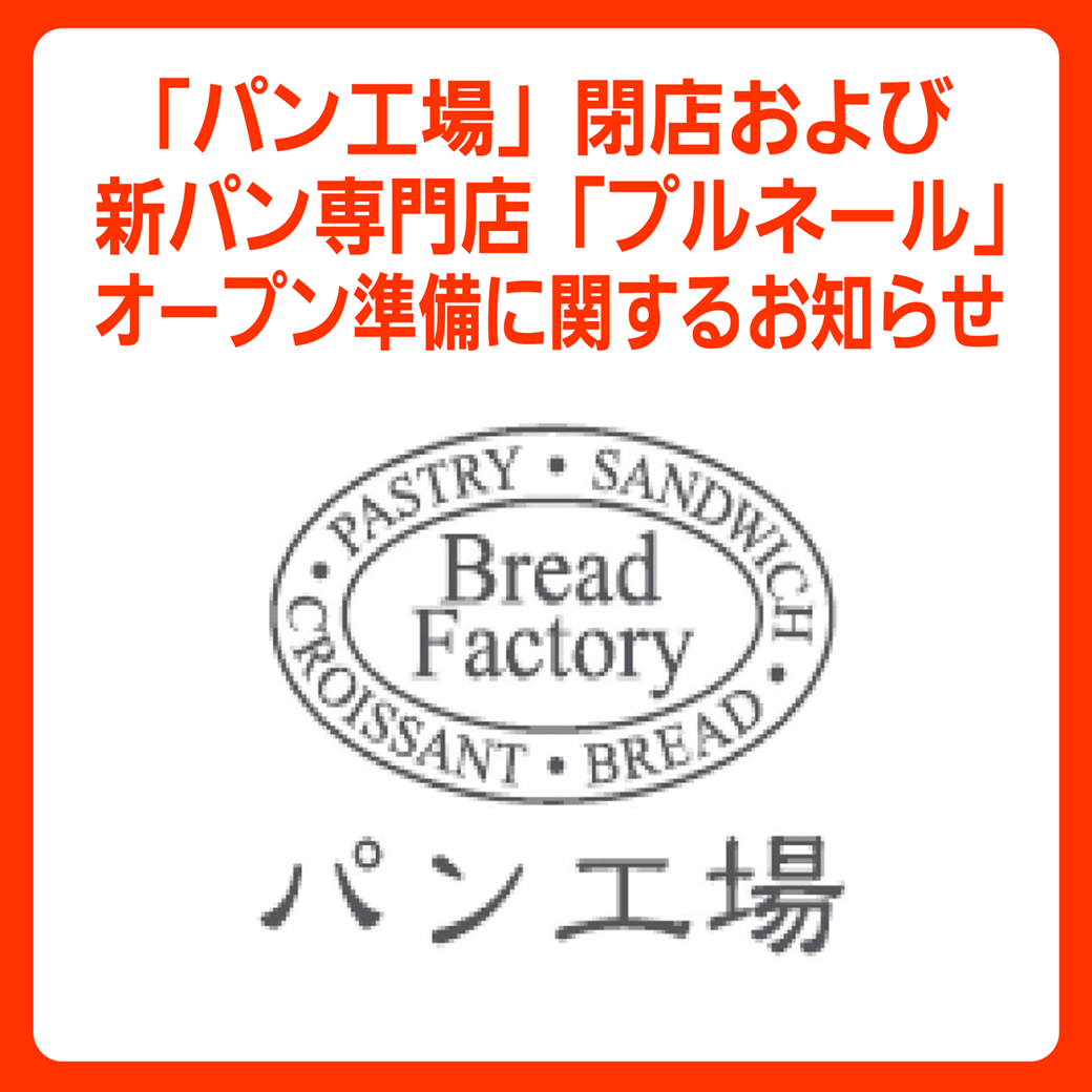 <イオン福津店>「パン工場」閉店および新パン店舗オープンのご案内