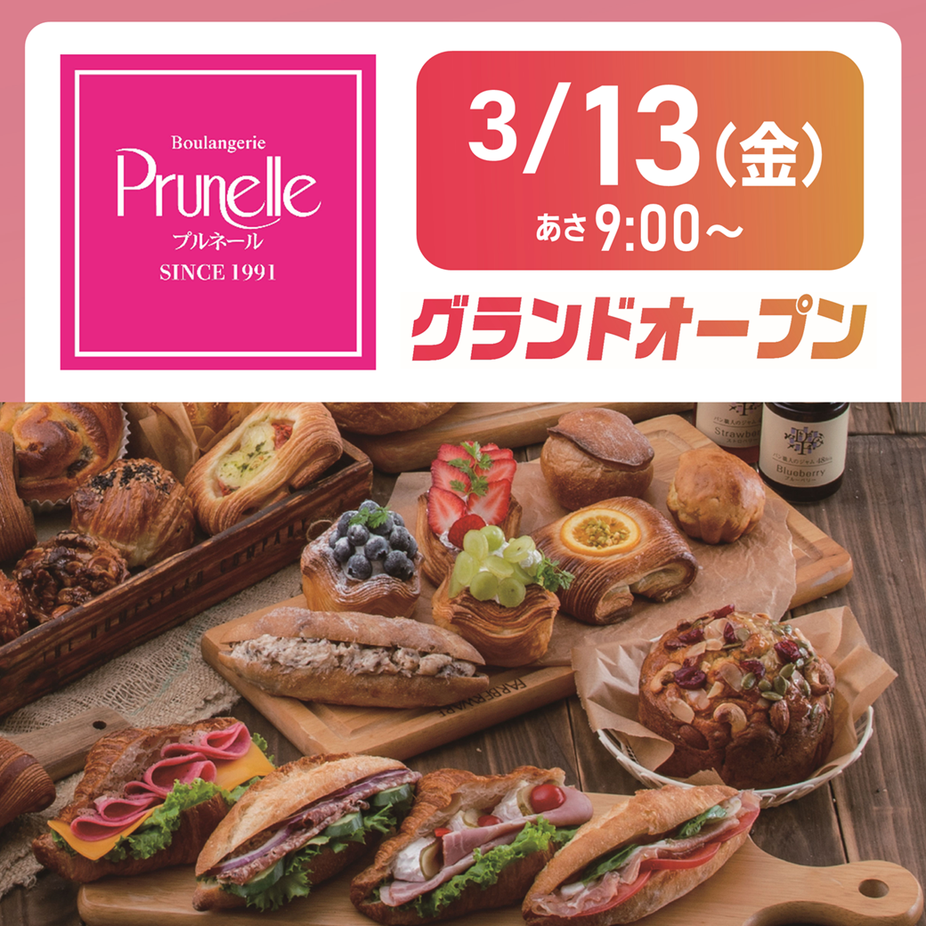 <イオン福津店>新パン専門店「プルネール」オープンのご案内