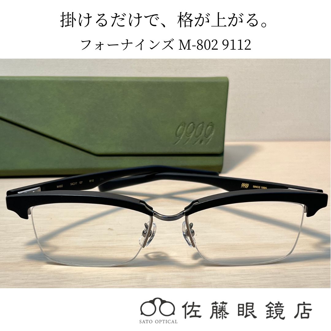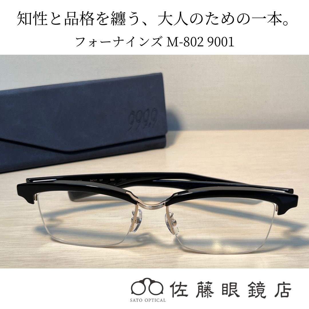 【佐藤眼鏡店】フォーナインズ M-802 ブラックマット×ガンメタリック クラシックと機能美が融合した大人の最適解