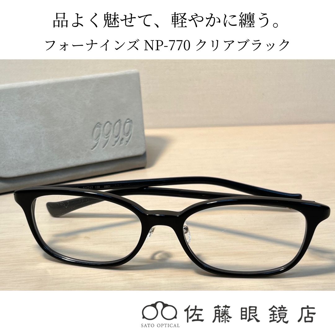 【佐藤眼鏡店】フォーナインズNP-770クリアブラック上品さと快適性を両立した大人女性のための一本