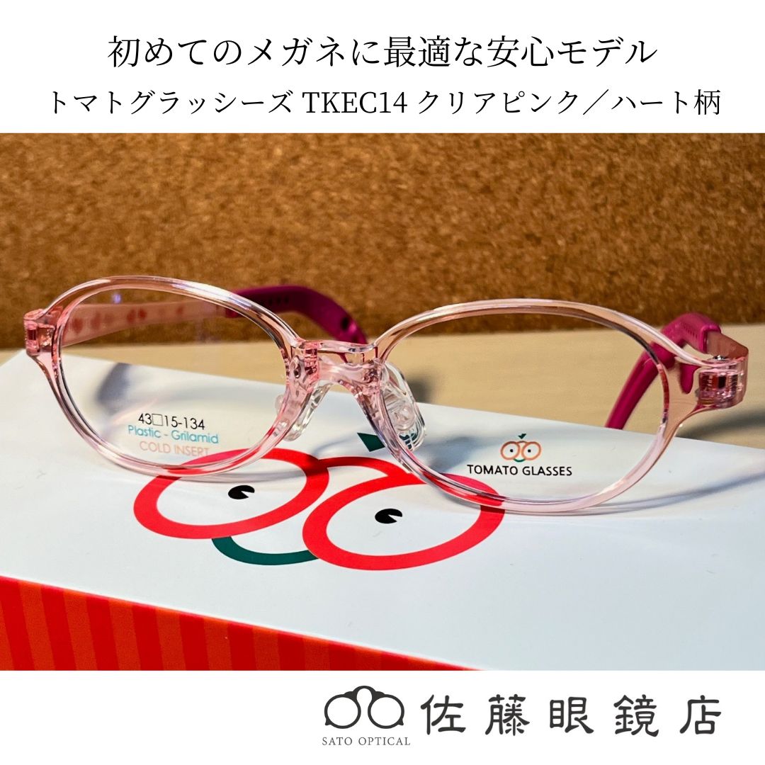 【佐藤眼鏡店】トマトグラッシーズ TKEC14 クリアピンク/ハート柄|初めてのメガネに最適な安心モデル