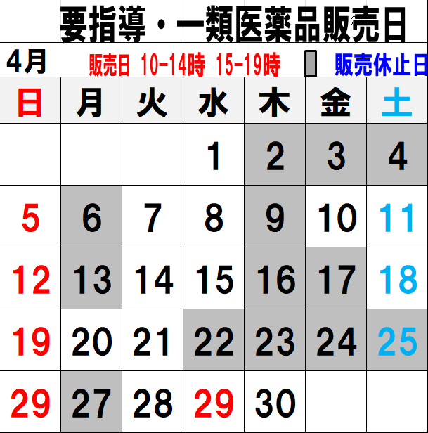 医薬品取扱営業時間 9:00-21:00※1類・要指導は10:00?19:00(14:00?15:00昼休憩)