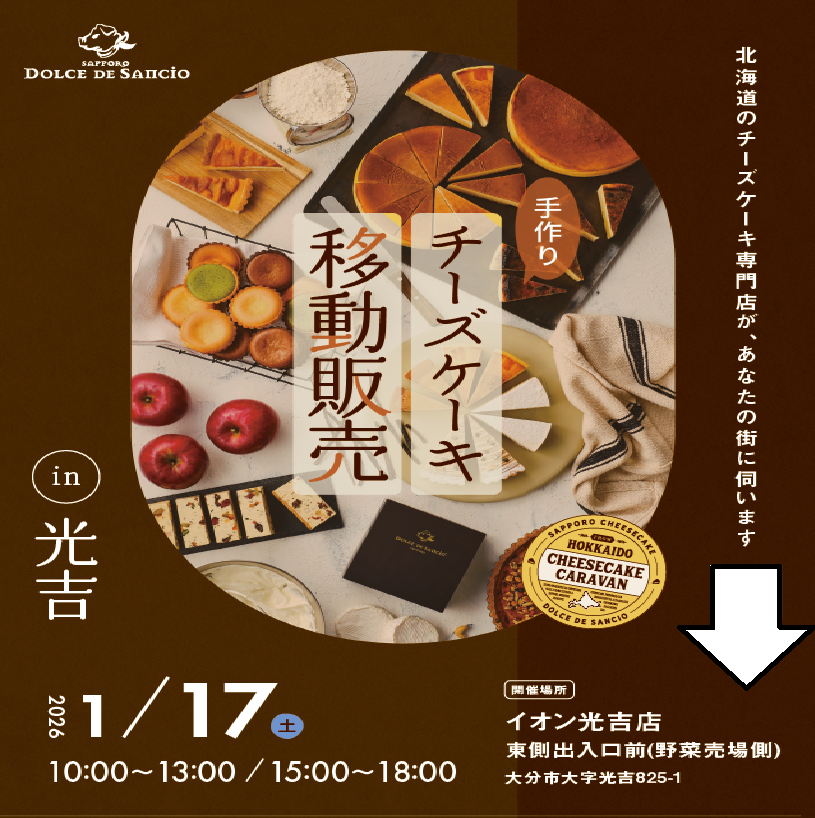 【イオン光吉店からのお知らせ】チーズケーキキッチンカー情報
