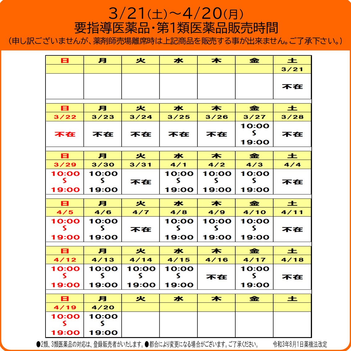 <イオン都城店>要指導医薬品・第1類医薬品販売時間