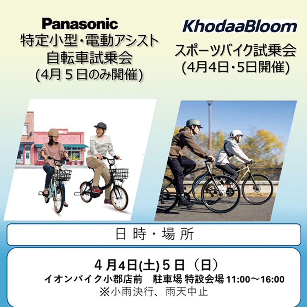 ・電動アシスト、特定小型原動機付自転車、スポーツバイク試乗会開催のお知らせ
