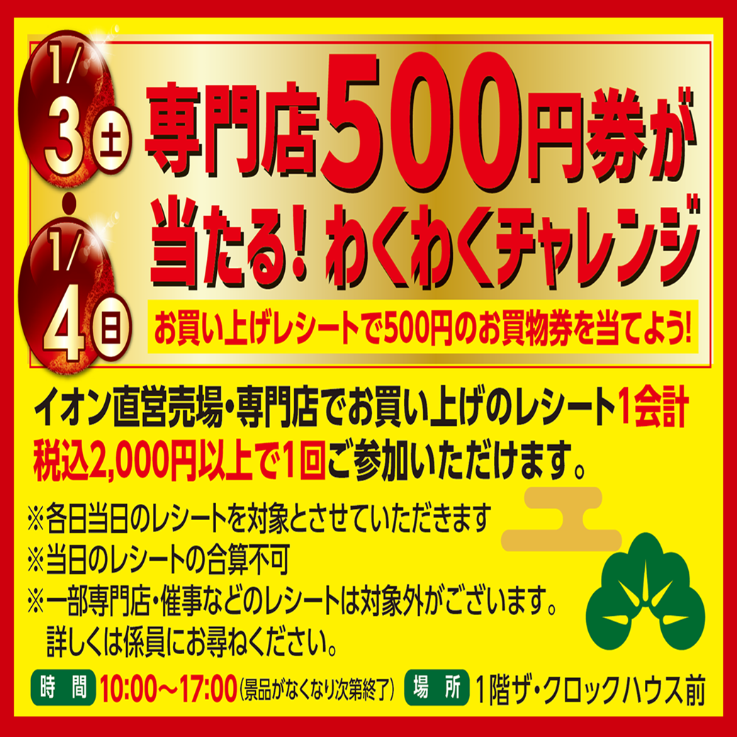 【イオン大村店】専門店500円券が当たる! わくわくチャレンジ