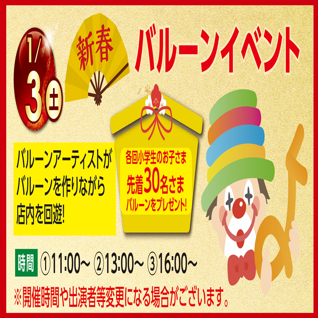 【イオン大村店】1/3(土) 新春 バルーンイベント