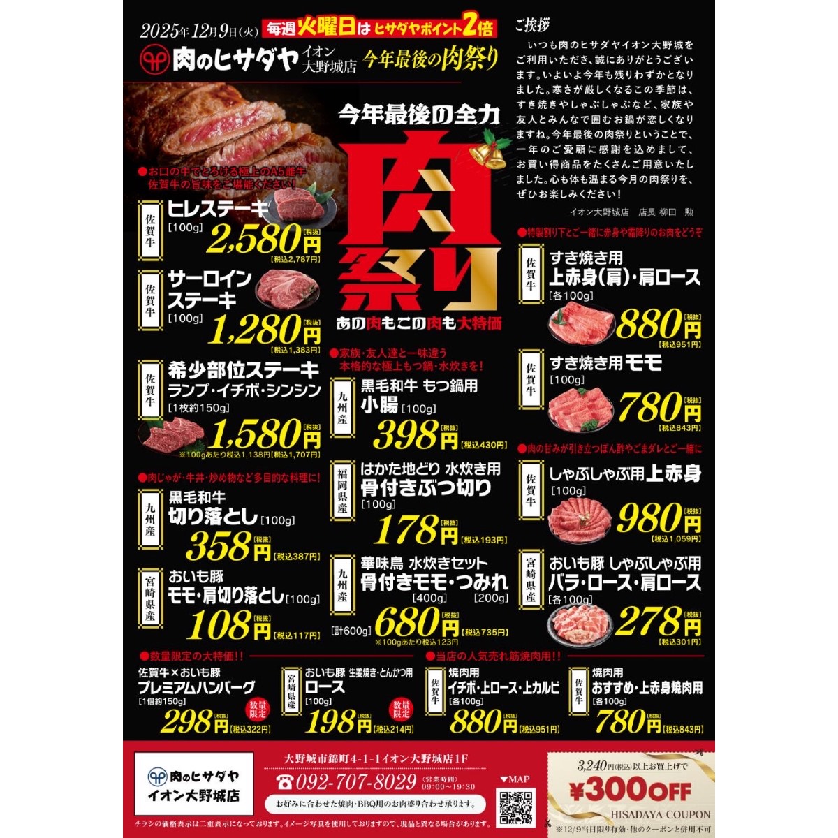 【肉のヒサダヤ】🥩毎月 9日は「肉祭り」
