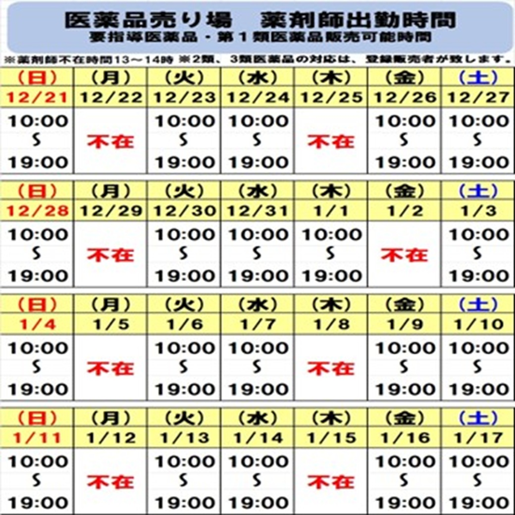 医薬品取扱営業時間 9:00-20:00