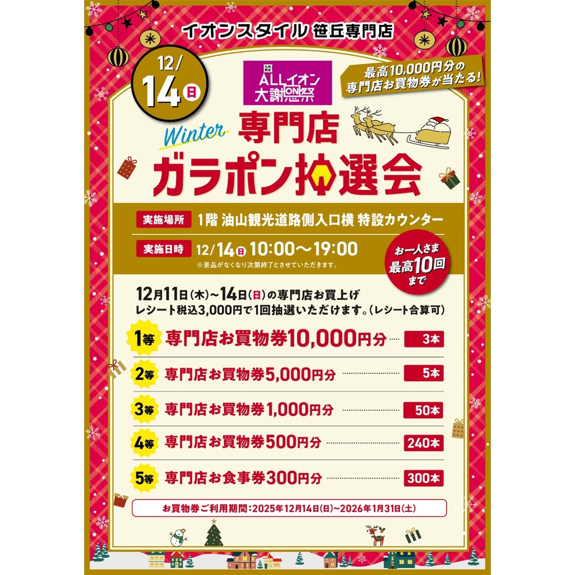 <予告>【専門店限定】12/11(木)~14(日) ガッチャクーポン!