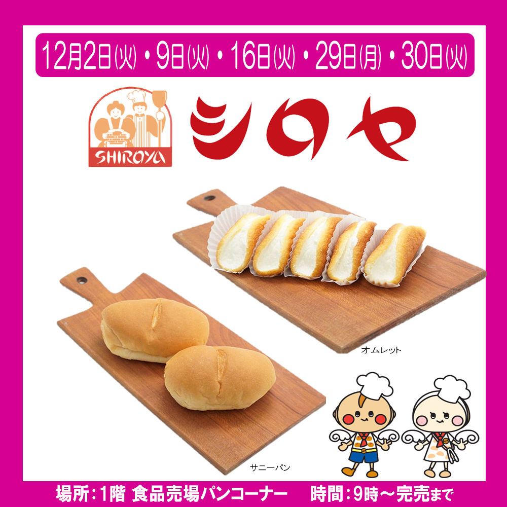 <イオン若松店>シロヤベーカリー販売のお知らせ