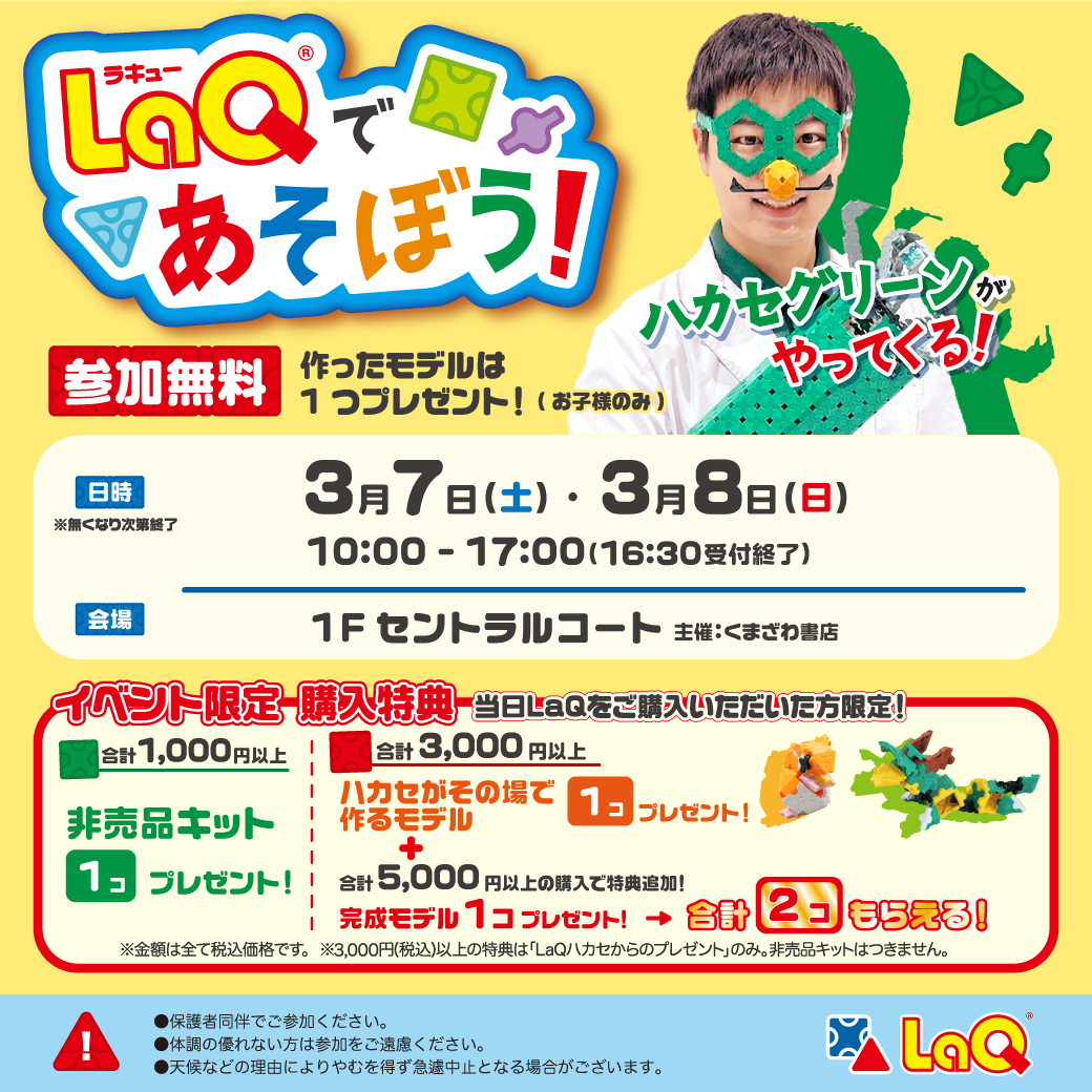 くまざわ書店若松店にて、LaQイベントを3月7日・8日イオン若松1階で開催致します👏