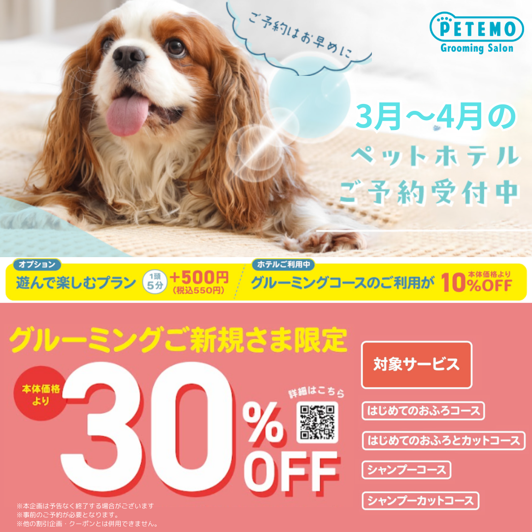 【グルーミング・ペットホテル予約受付中!】ご新規さま30%OFF♪