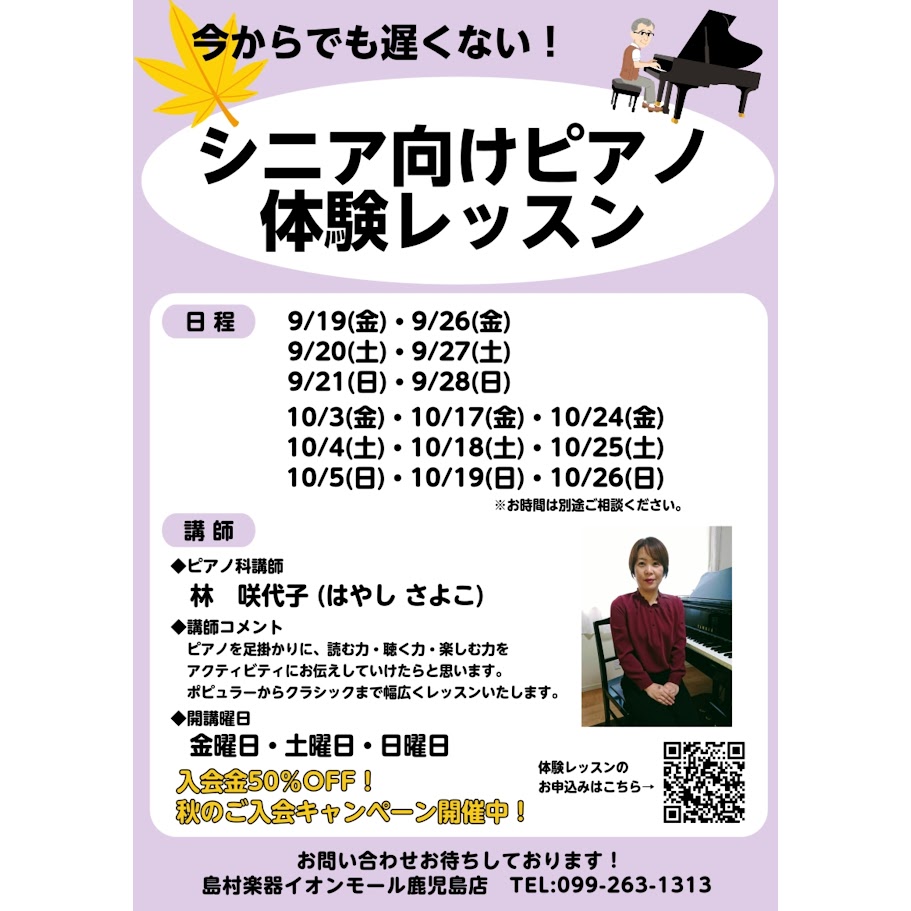 【島村楽器】今からでも遅くない!シニア向けピアノ体験レッスン