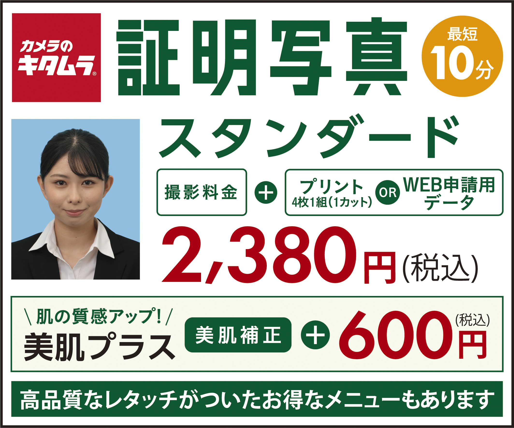 〈カメラのキタムラ〉各種証明写真の撮影いたします!