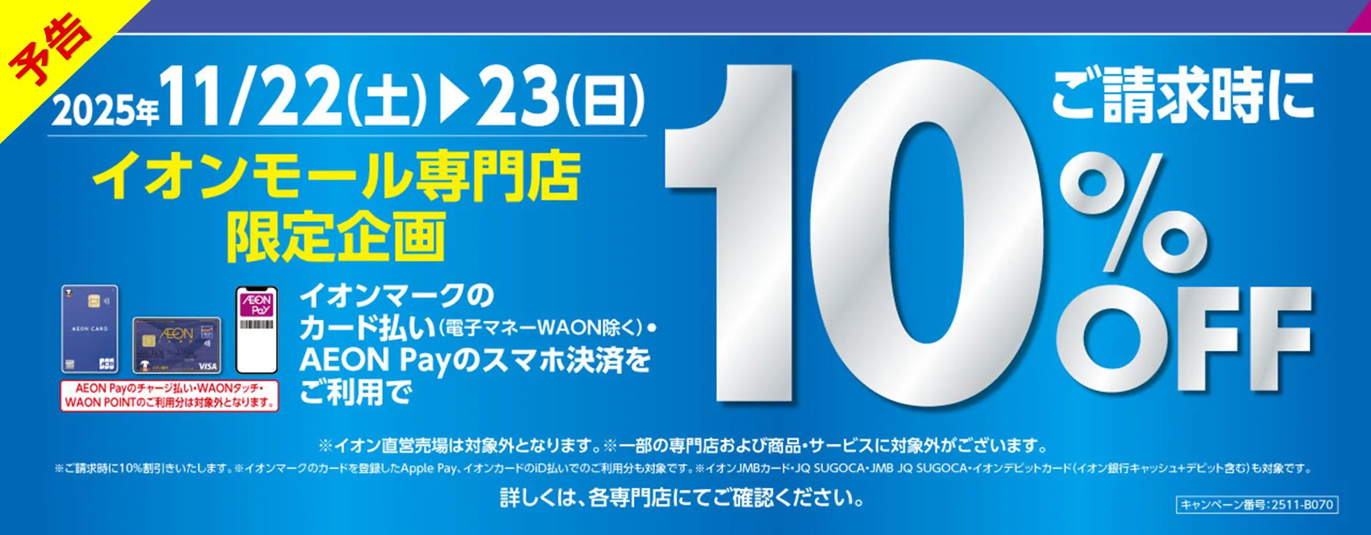 ※各専門店営業時間の詳細は各ショップページをご覧ください。