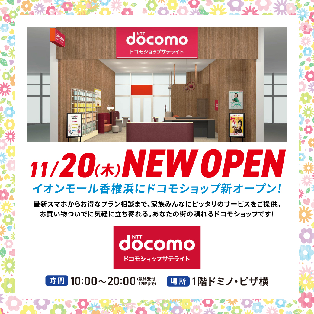 イオンモール香椎浜にドコモショップ新オープン! 最新スマホからお得なプラン相談まで、家族みんなにピッタリのサービスをご提供。 お買い物ついでに気軽に立ち寄れる。 あなたの街の頼れるドコモショップです!