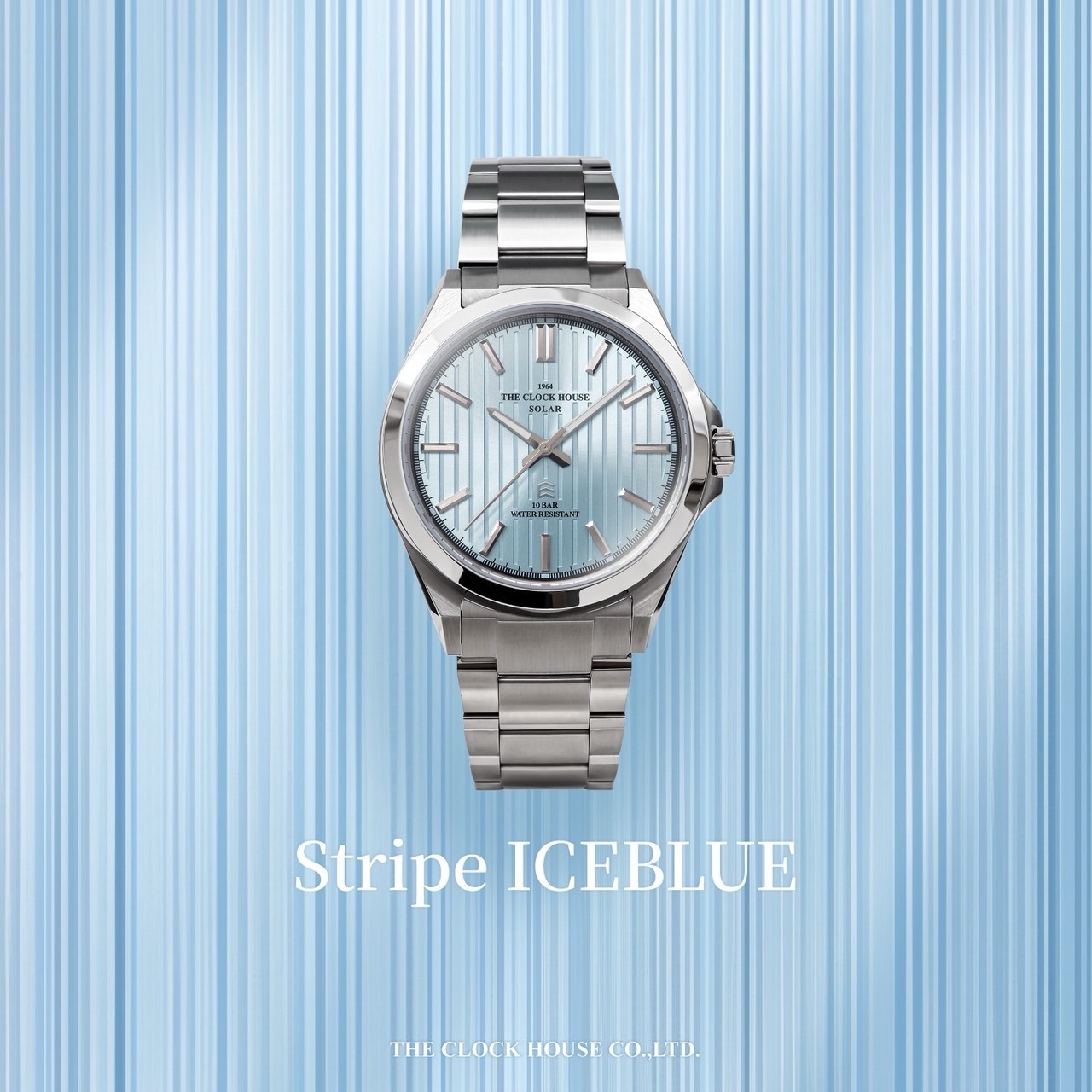THE CLOCK HOUSEよりアイスブルー文字盤にストライプ仕上げを施したソーラーモデル登場