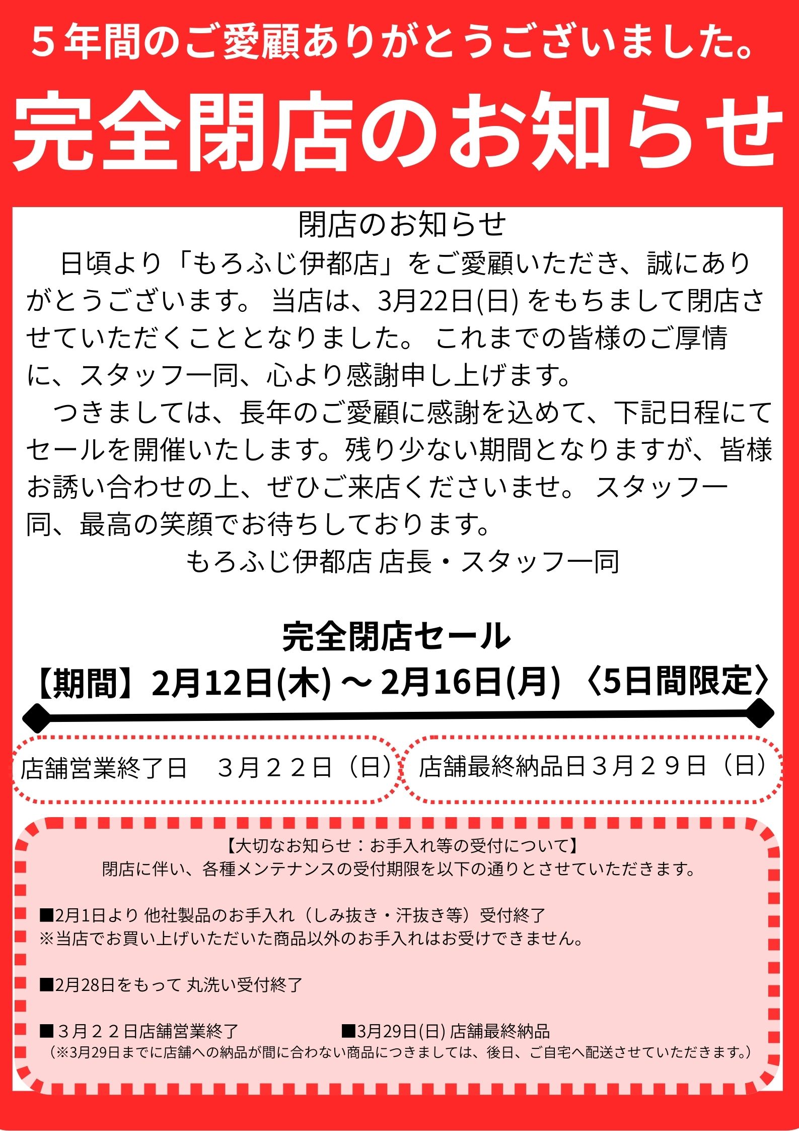 店舗からのお知らせ