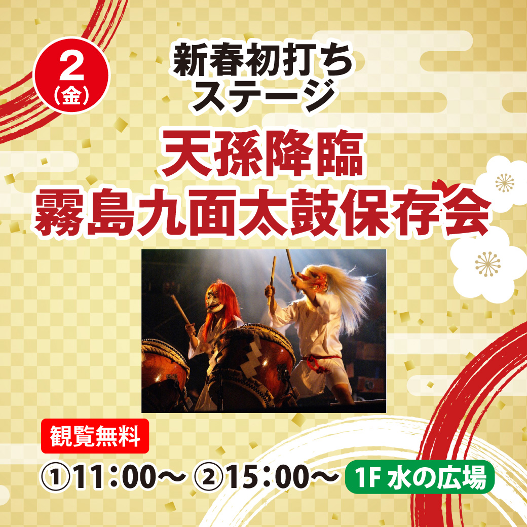 天孫降臨霧島九面太鼓保存会 新春初打ちステージ