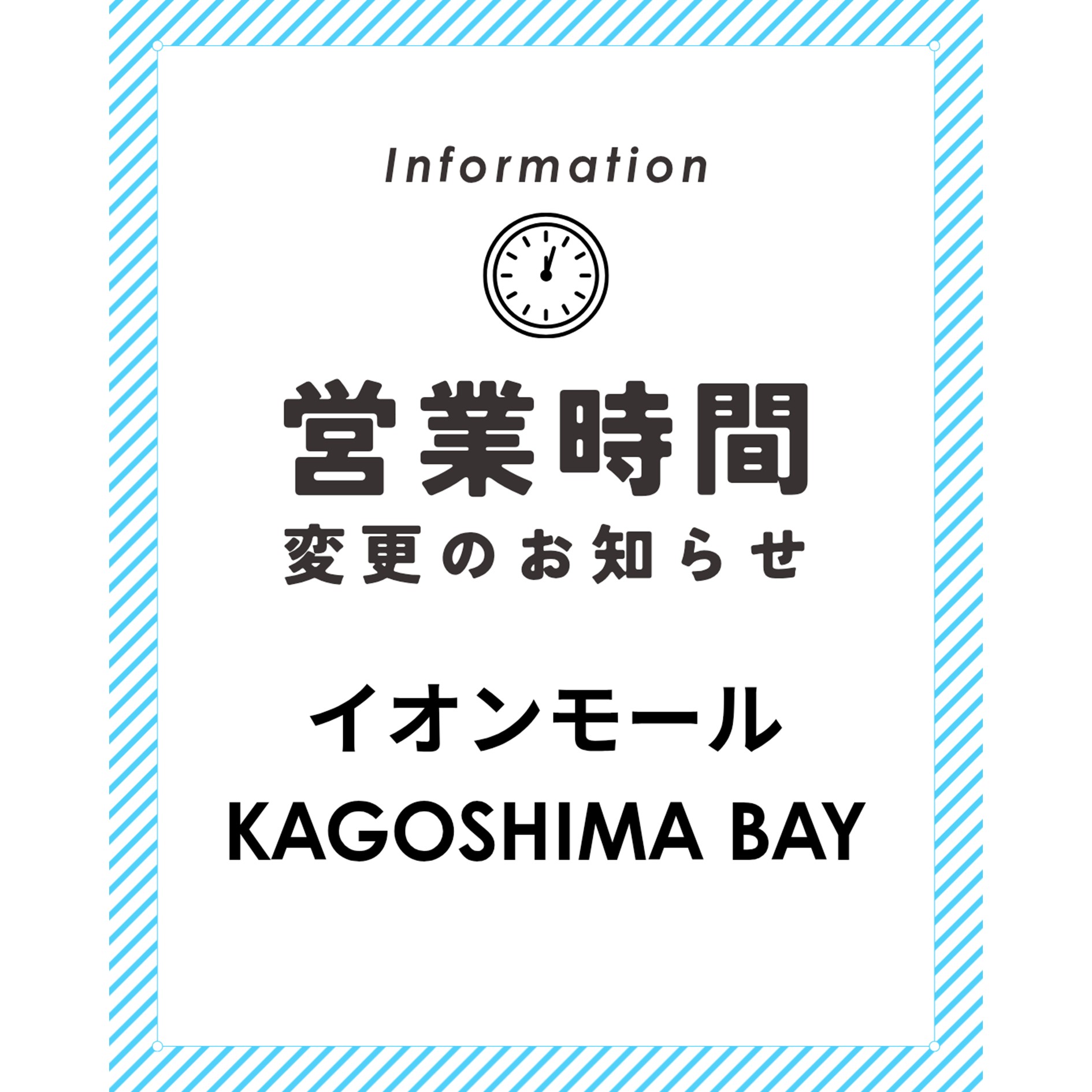 ≪ リニューアルオープン営業時間変更のお知らせ ≫ 4/24(金)~4/26(日) は朝9時に開店いたします。 ※一部店舗は除きます。 また、イオン鹿児島店直営売場は 4/21(火) は21時閉店、22(水)23(木)は臨時休業とさせていただきます。 ※専門店街は通常営業です。
