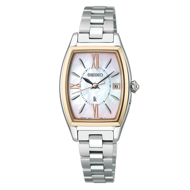シャンパンゴールドのベゼルと白蝶貝ベースのダイヤルが手元を明るく引き立ててくれるレディースウォッチです。