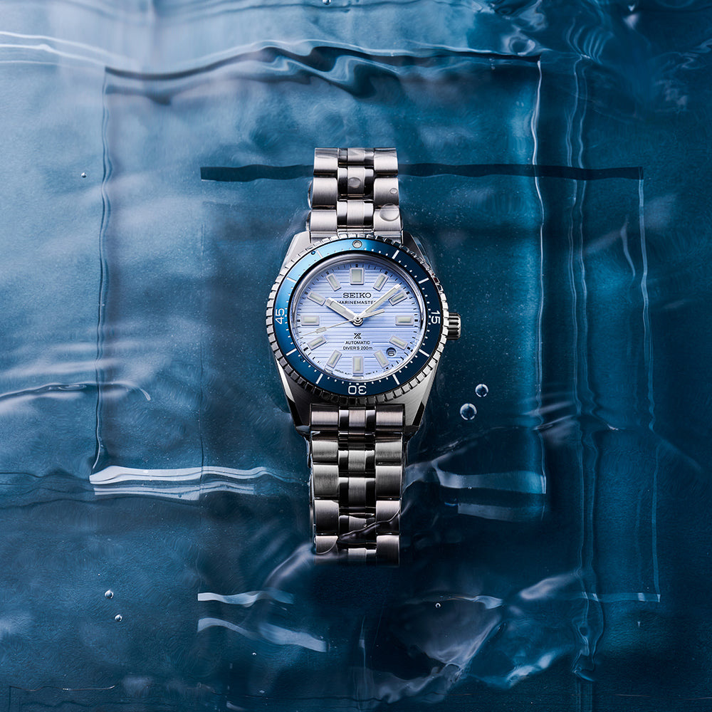 本作は「1965 メカニカルダイバーズ」の意匠である、時・分・秒針の形状と特徴的な角型インデックスを受け継ぐと共に、ケースやブレスレットに美しい鏡面仕上げとヘアライン仕上げを施すことで、洗練された雰囲気を醸し出しています、時・分・秒針とインデックスには高輝度ルミブライトを塗布し、暗い場所でも高い視認性を確保。ダイバーズウォッチ用に開発した薄型で耐衝撃性の高い「キャリバー 6L37」を搭載することで、セイコーの現行メカニカルダイバーズウォッチとして最薄の12.3mmを実現しました。