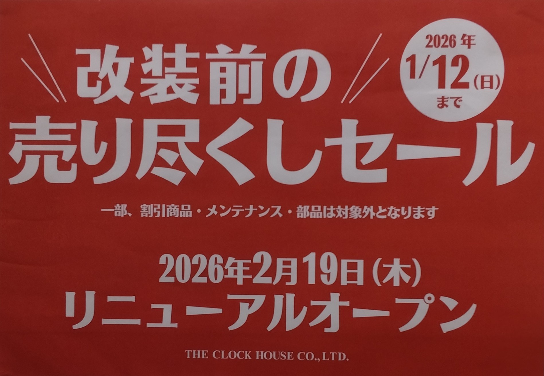 <THE CLOCK HOUSE> 改装前の売り尽くしセール!
