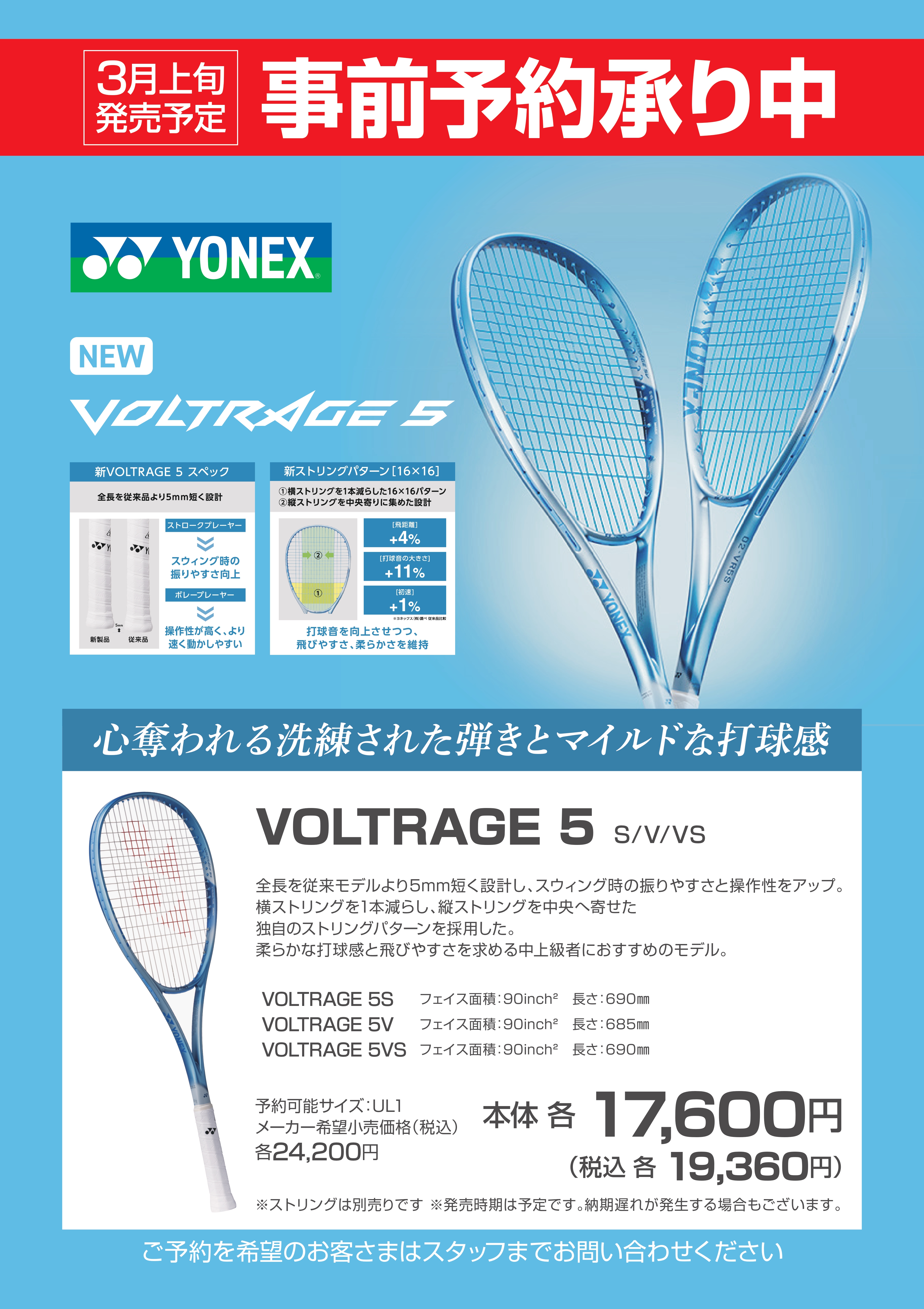 【メガスポーツ】【新製品】ヨネックス VOLTRAGE 5(ボルトレイジ5)事前予約受付中!