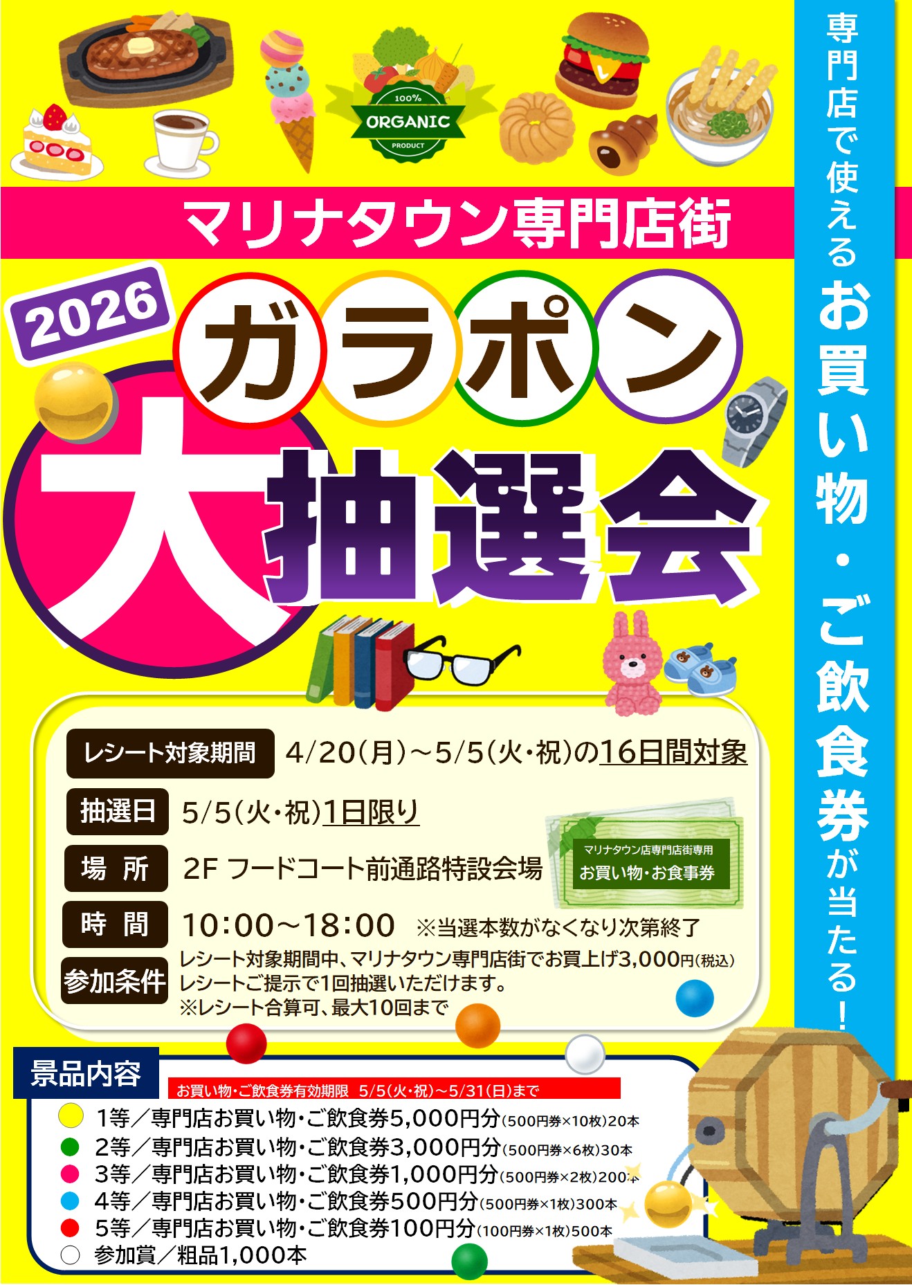 ※専門店・キャッシュコーナーの営業時間、オーダーストップは各店舗にてことなります。