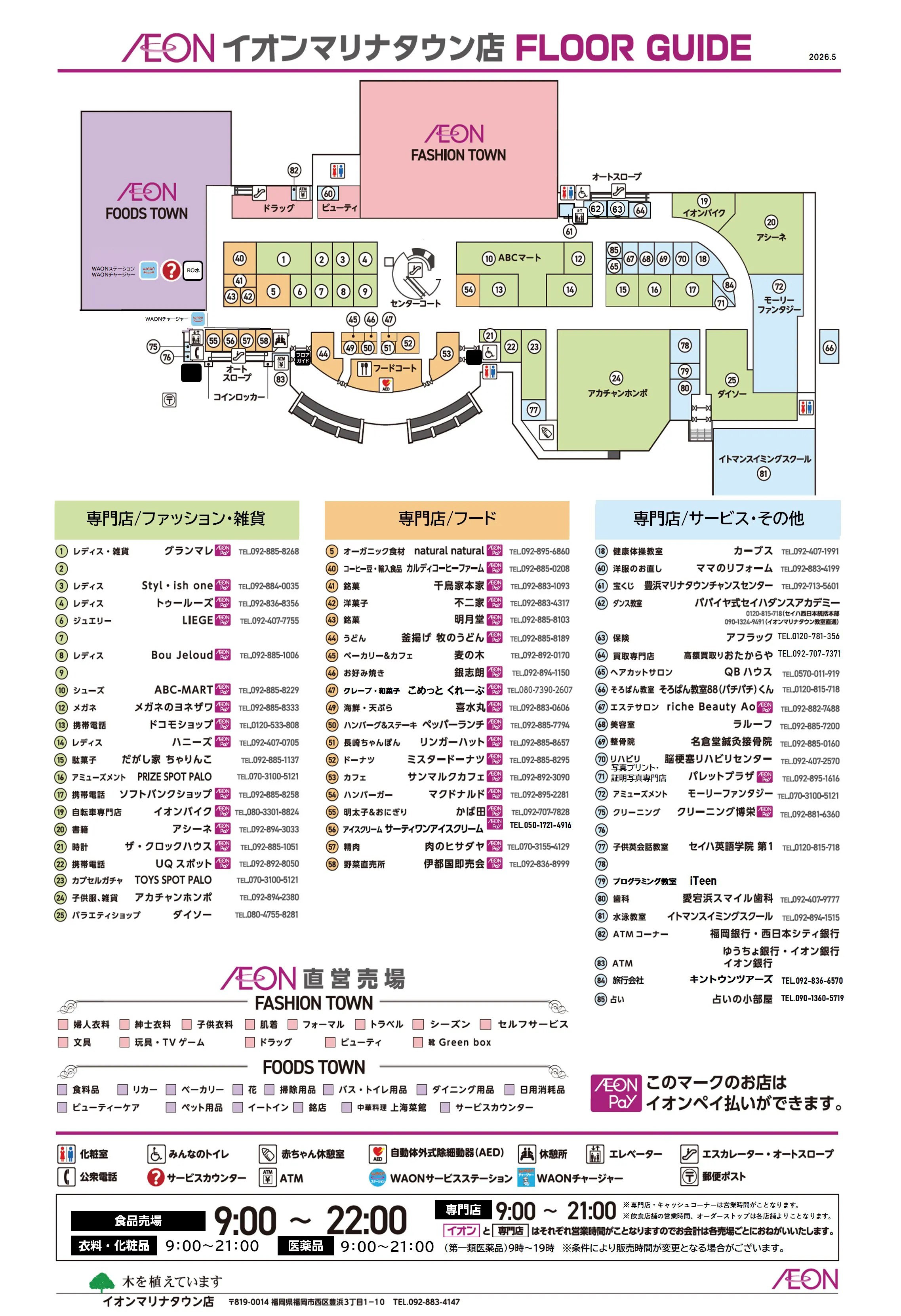 (衣料・化粧品)9:00~21:00