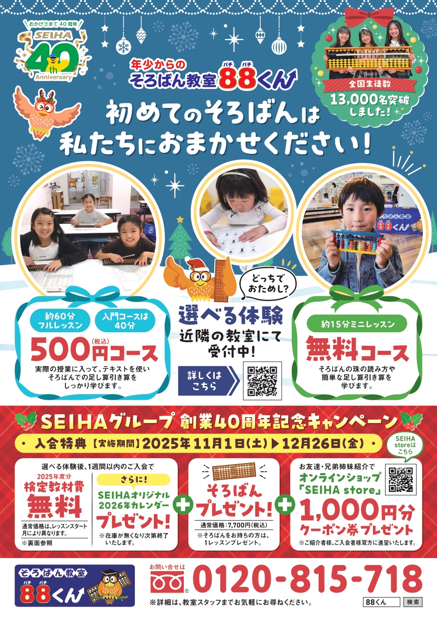 〈そろばん教室88くん〉冬のキャンペーンのお知らせ