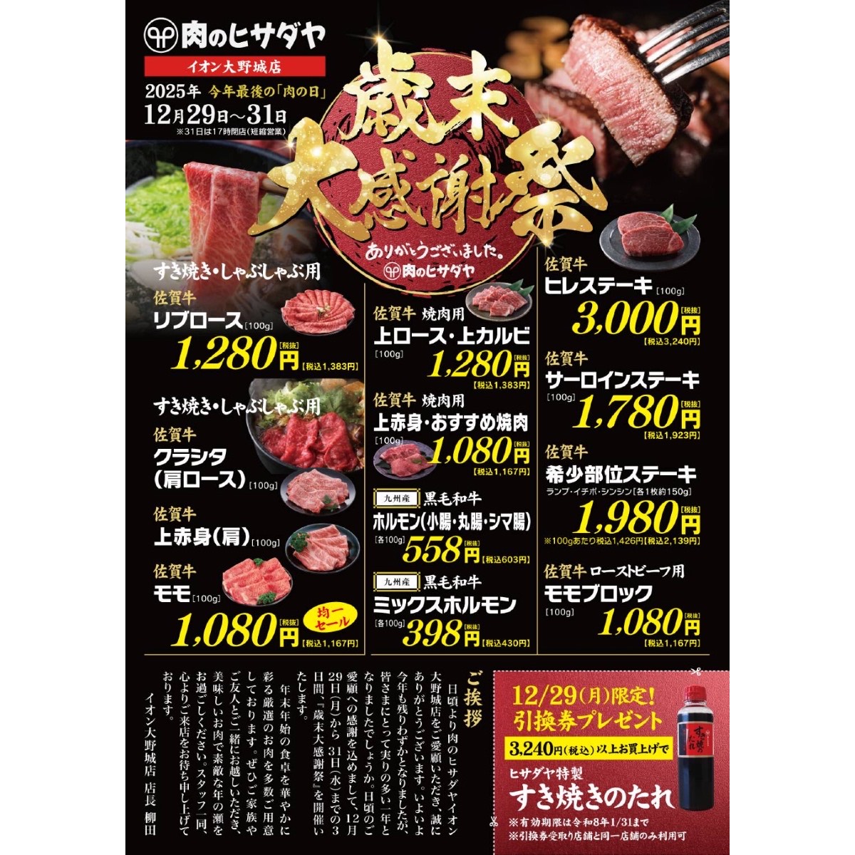 【肉のヒサダヤ】歳末大感謝祭