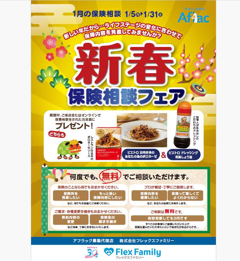 【アフラック】1月保険相談フェアのお知らせ🌅