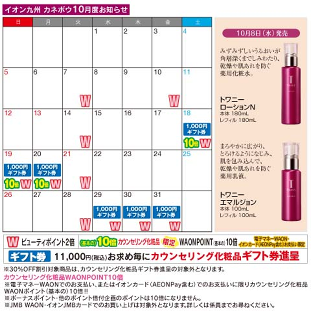 ●カウンセリング化粧品(資生堂・カネボウ・コーセー・ソフィーナ・マックスファクター) 10:00~19:00